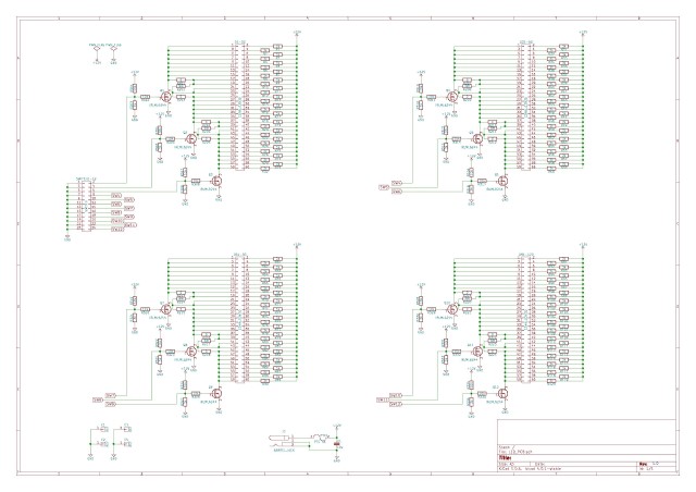 1枚のボードには120点のLEDが配線できるようになっており、ボード上には制限抵抗も実装していますので、コネクタ(ピンヘッダ)にはダイレクトにLEDを配線することができます。