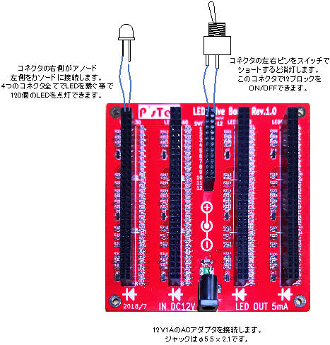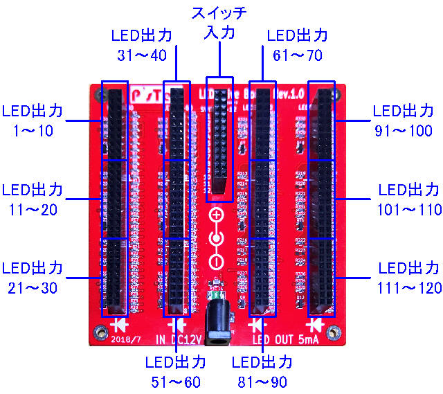 | 120点のLEDは12ブロックに分かれており、スイッチを追加することによりON/OFFが可能(スイッチ未接続時はLED点灯) |