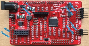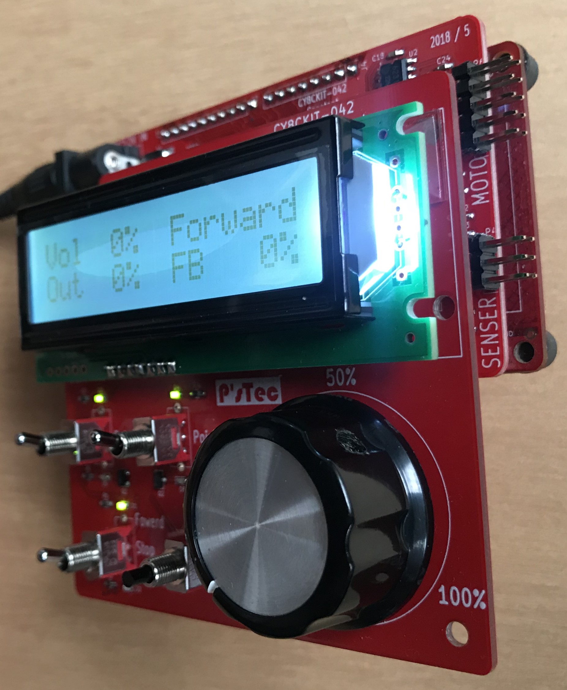 このパワーパックは、CPUボードにPSoC4の開発キット(CY8C-KIT-042)を使用し、上段にはPSoC4にそのまま差し込めるドライバI/Oボードを作製しました。