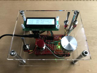 | 基本構成にLCDとスイッチ、ボリュームを配線し、ACアダプタから12Vを接続する事でオリジナルパワーパックの完成になります。 |