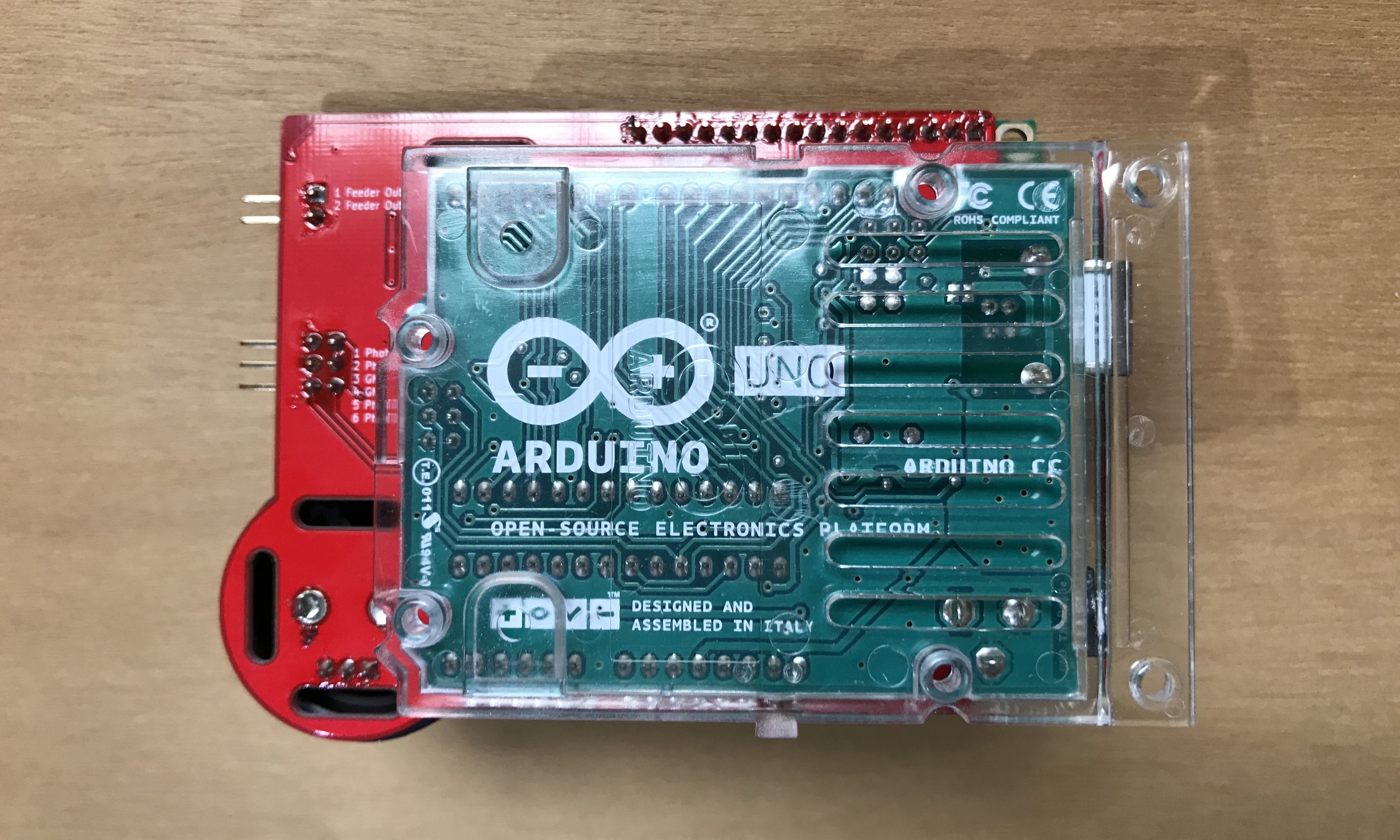 以下のキバンがArduinoのPowerPackとなります。 左がArduino UNOで、右がPowerPackキバンになります。 PowerPackキバンをArduinoの上に重ねて使用します。 このパワーパックはArduinoのMPUボードを使用している事から ファームウェアの作成、書き込みの出来る方向けのキバンとなります。 ArduinoのC言語が出来る方であれば、PWMパワーパックが比較的 簡単に作成することが出来ると思います。 これからArduinoをやってみたいとかC言語を勉強していきたいという方には 最適なキバンになっています。 電源はArduinoについているDCジャックに12Vのアダプタを差せば、 そのまま車両走行用の電源まで供給されるようになっています。 2ピンの2.54mmピンヘッダにFeeder線を接続します。 6ピンの2.54mmピンヘッダがセンサー2本が接続できるようになっています。