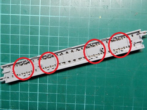 | F線路の真ん中部分はフィーダー差込口があり高さが無いためセンサ取り付けできません。 |
