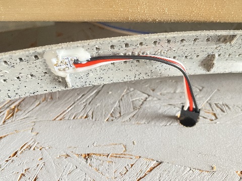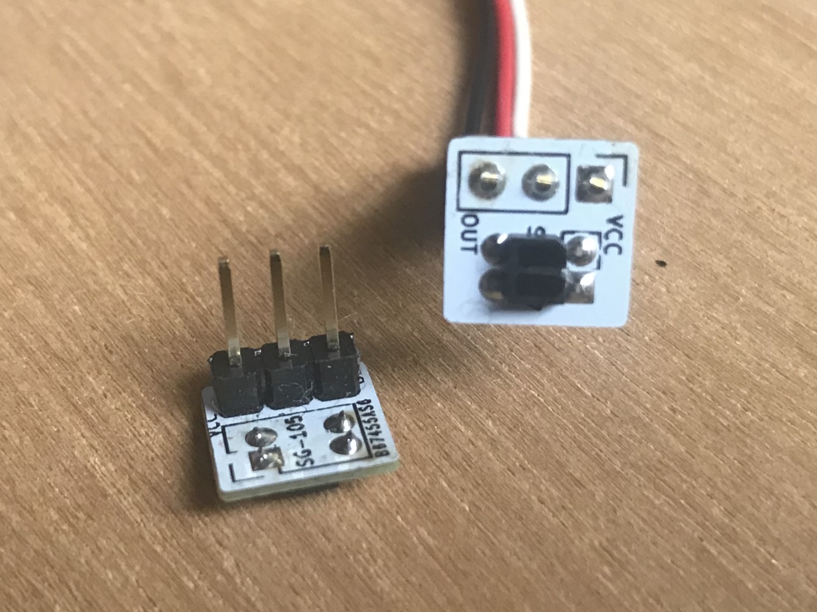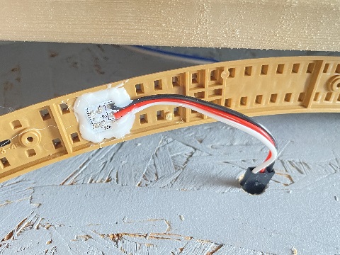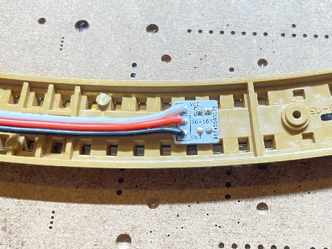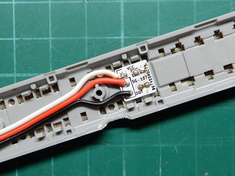 G下面に余裕が無い場合、赤丸部のセンサケーブル半田付け部分を平らにヤスリで削ると収まりが良くなります。 |