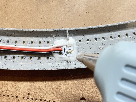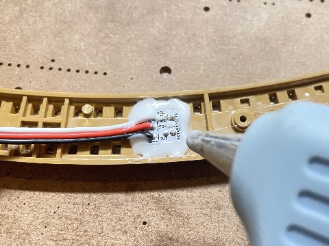 C ホットボンドを底面よりはみ出さない様、平らに慣らしながら固定します。 |